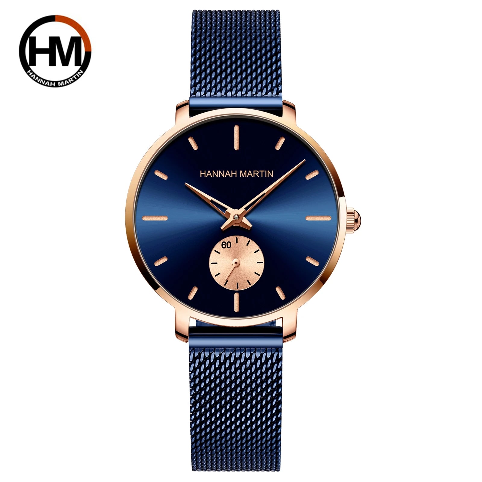 Sublimez votre poignet avec cette montre femme Hannah Martin 2026 - une montre habillée élégante avec mouvement quartz de précision et bracelet maille en acier inoxydable, disponible en 4 couleurs (rose, blanc, noir, bleu), résistante à l'eau 3 Bar, parfaite pour le bureau, les soirées et toutes vos occasions spéciales.