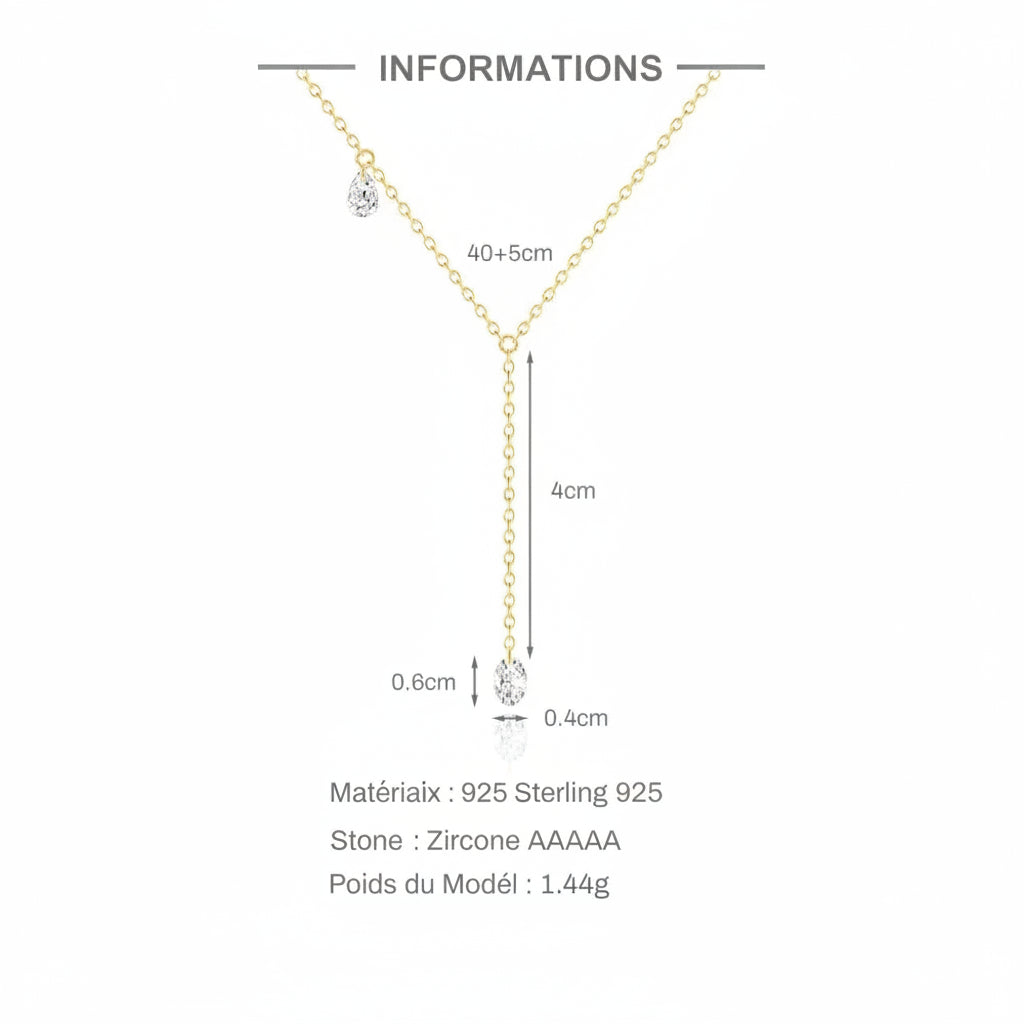 Sublimez votre clavicule avec ce magnifique collier en forme de Y orné d'un élégant pendentif goutte d'eau. Fabriqué en argent sterling 925, ce bijou classique et raffiné apporte une touche de sophistication à toutes vos tenues.