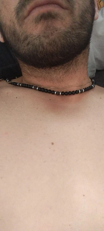 Parfait pour un look casual-chic, ce collier se porte aussi bien avec un t-shirt qu'avec une chemise. Un accessoire masculin intemporel qui ajoute une touche de caractère à n'importe quelle tenue.