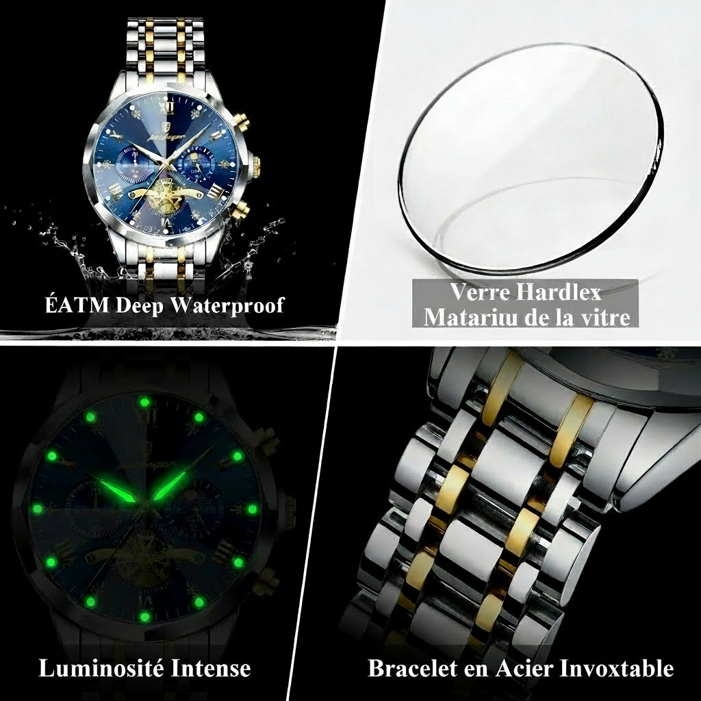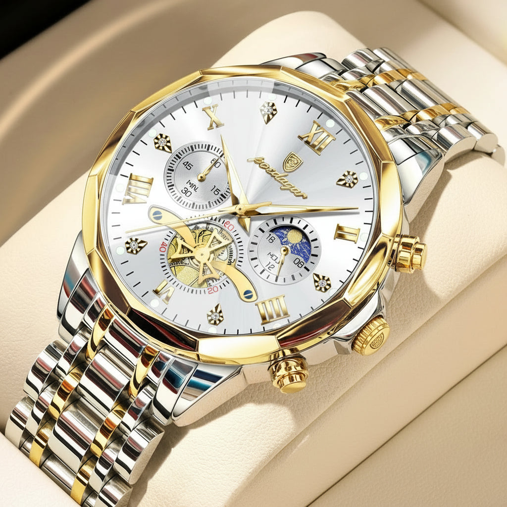 Montre Homme POEDAGAR de Luxe - Chronographe Lumineux Étanche Acier Inoxydable