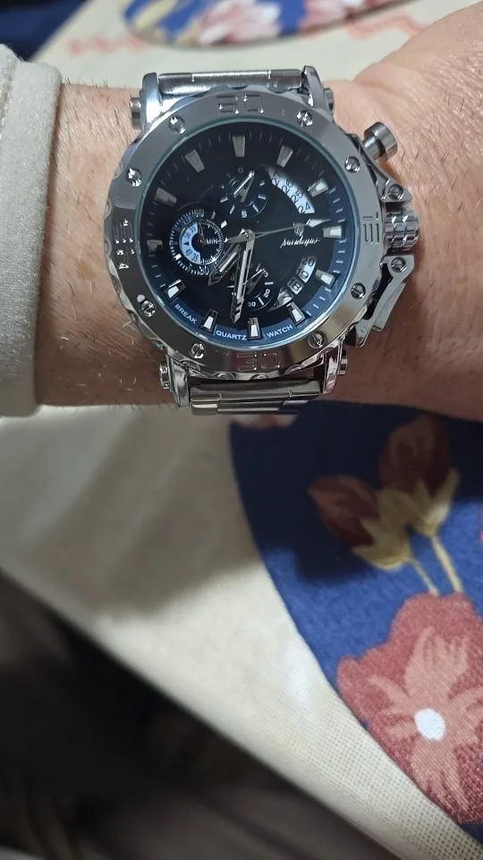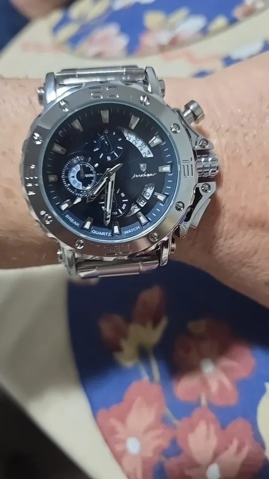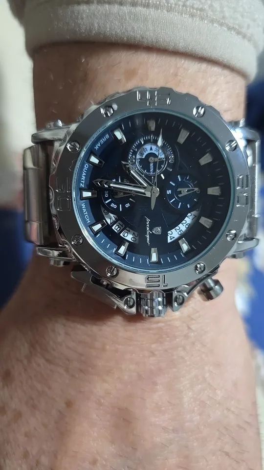 Affirmez votre style avec cette montre homme POEDAGAR de luxe - une montre imposante avec grand cadran 45-49mm, chronographe fonctionnel, calendrier complet, aiguilles lumineuses et boîtier/bracelet acier inoxydable, disponible en 3 couleurs (argent bleu, argent vert, argent noir), résistante à l'eau 3 Bar adaptée à la natation, style plongeur robuste, le sport, le bureau et toutes vos occasions.
