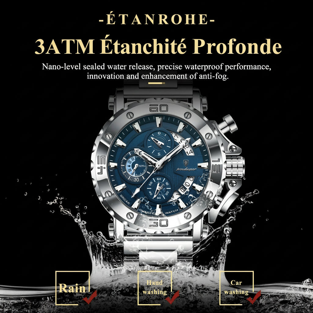 Montre Homme POEDAGAR de Luxe - Chronographe Lumineux Calendrier Étanche Acier Inoxydable