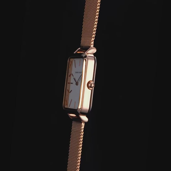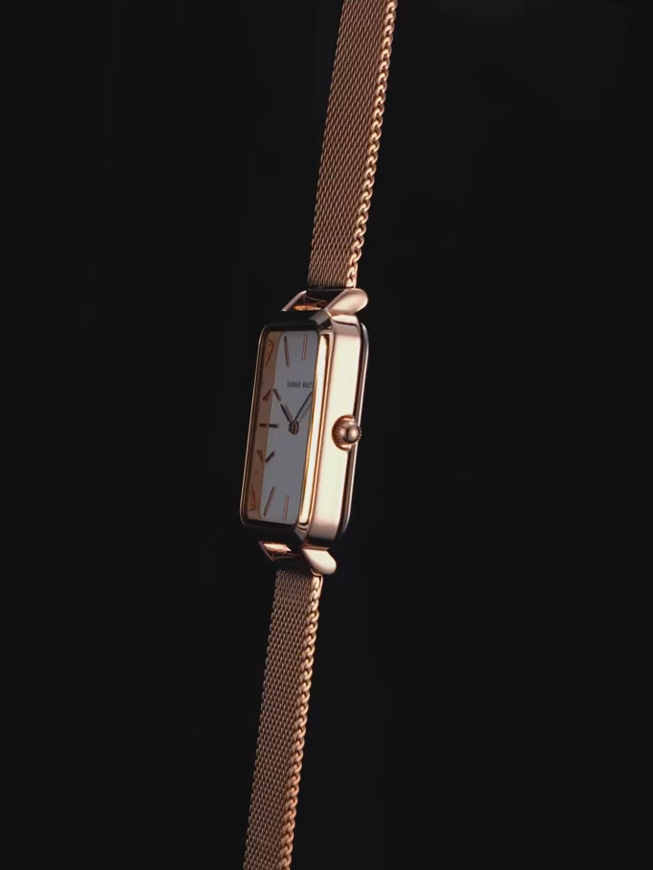 Sublimez votre poignet avec cette montre femme Hannah Martin carrée - une montre fashion élégante avec mouvement quartz japonais de précision et bracelet maille en acier inoxydable, disponible en 7 combinaisons de couleurs (rose or, noir or, blanc argent, noir argent, blanc or, blanc doré, or), résistante à l'eau 3 Bar, parfaite pour le bureau, les loisirs et toutes vos occasions.