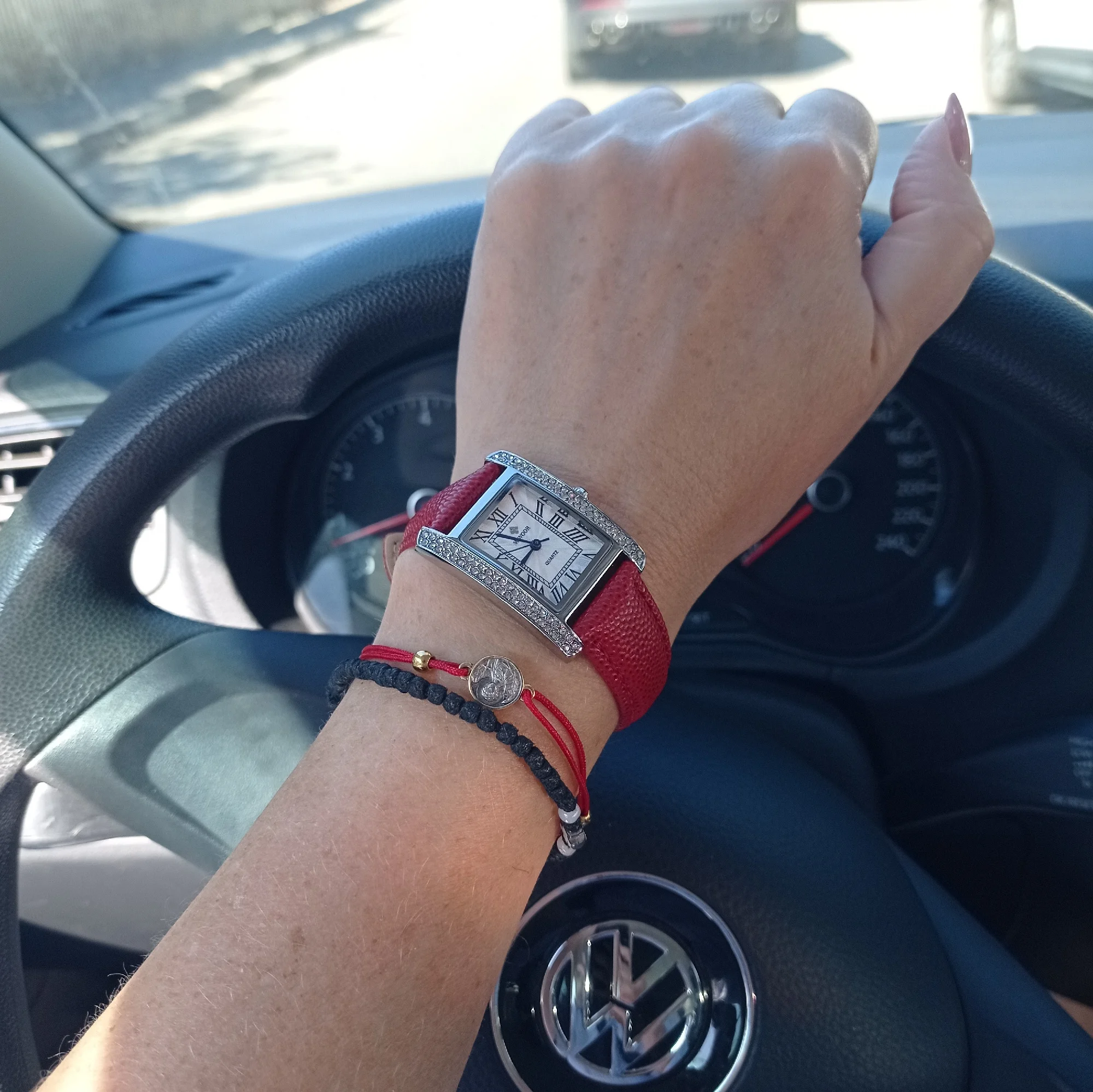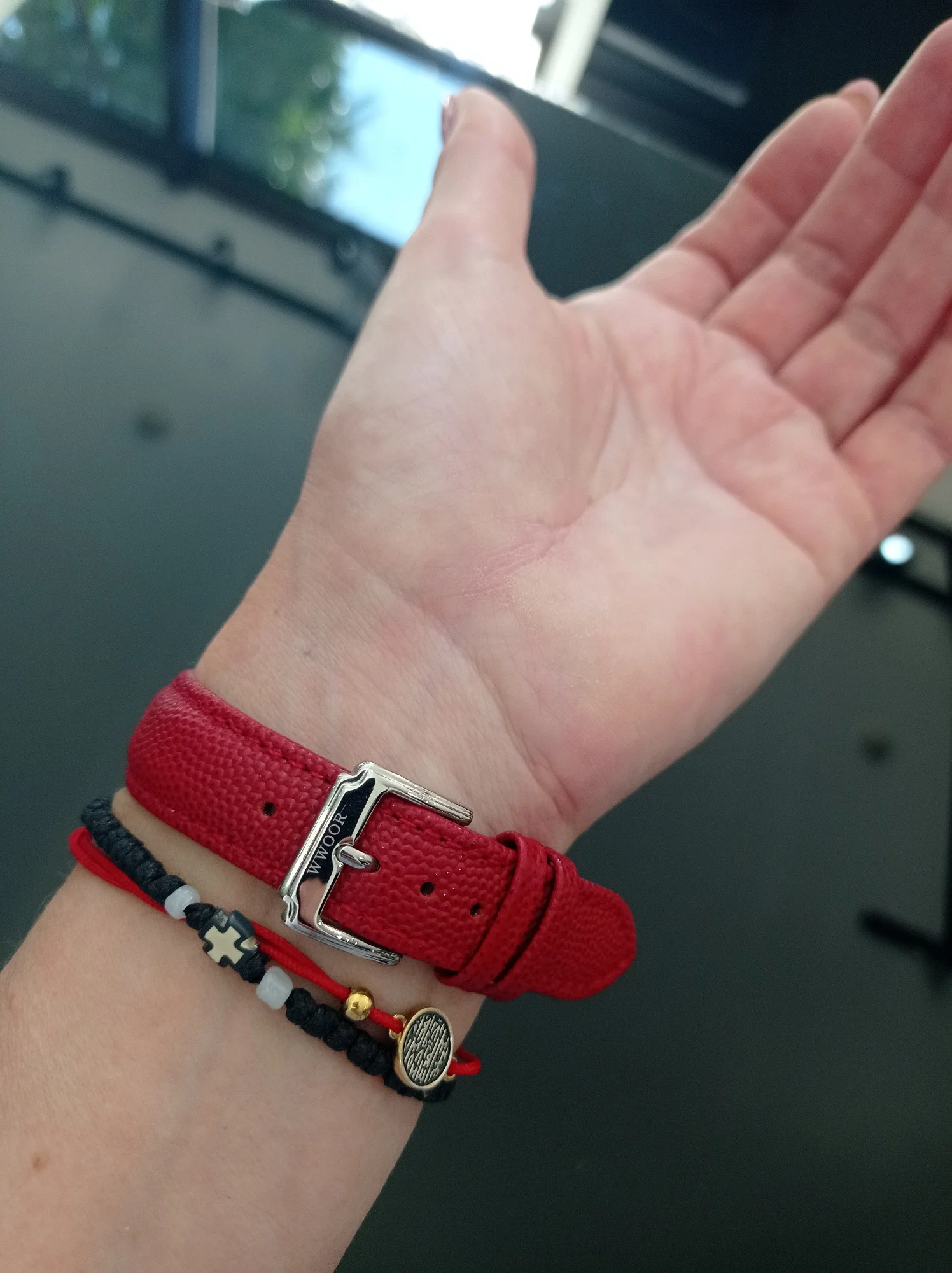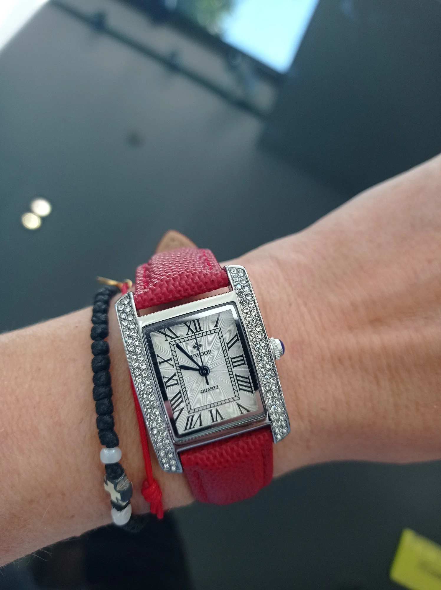 Bracelet cuir rouge avec boîtier argenté. Éclatante et élégante, pour un look affirmé.