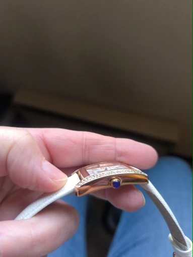 Bracelet cuir blanc avec boîtier or rose. Romantique et féminine, très tendance en 2025.