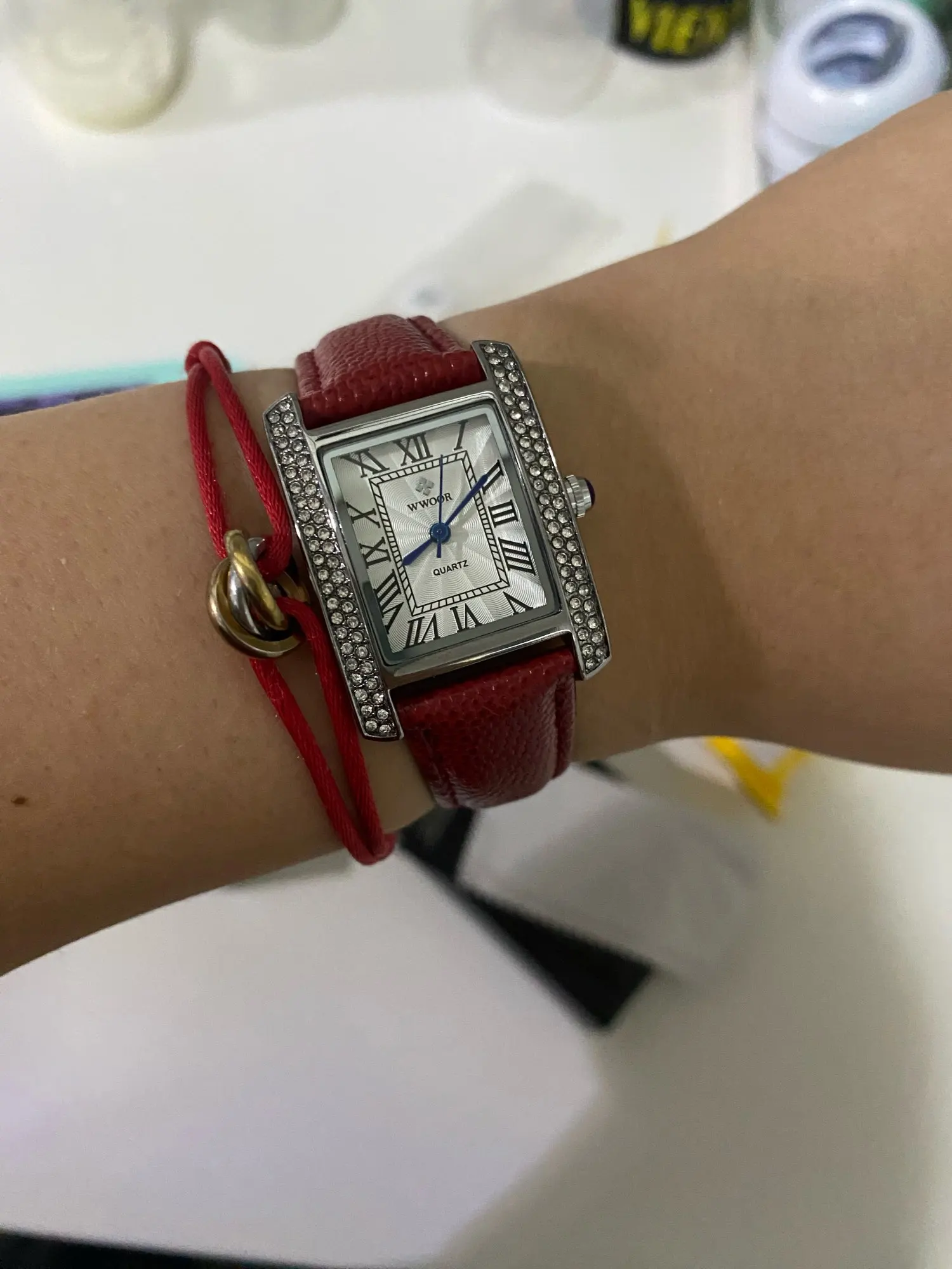 Le cadran de cette montre WWOOR est orné de diamants/strass étincelants qui créent un effet luxueux et féminin. Ces pierres brillantes captent la lumière à chaque mouvement, ajoutant une touche de glamour à votre poignet. Le design carré unique se démarque des montres rondes traditionnelles, offrant une esthétique moderne et sophistiquée.